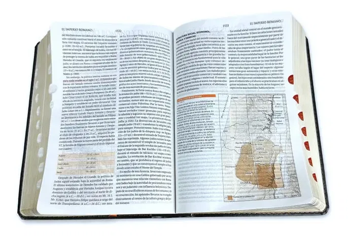 Así, la Biblia de Estudio Teológico RVR 1960 es una herramienta imprescindible para laicos y especialistas, y también para todos los que desean conocer la Palabra de Dios y sus matices históricos y sociales de la manera más profunda y detallada posible sin dejar de lado la precisión científica y el rigor técnico. • Más de 44 mil notas de estudio esclarecedoras • Más de 200 mapas detallados • Más de 200 tablas comparativas • Más de 60 cuadros temáticos • Esquemas explicativos, diagramas e ilustraciones • Concordancia de 148 páginas Ensayos incluidos: • La teología del Antiguo Testamento • La fecha del éxodo • El período entre el Antiguo y el Nuevo Testamento • El Imperio romano y el mundo grecorromano en la época del Nuevo Testamento • Grupos judíos en la época del Nuevo Testamento • La teología del Nuevo Testamento • La fecha de la crucifixión de Jesús • Cómo leer los Evangelios y Hechos • Cómo leer las epístolas • El plan divino para la salvación • Doctrina bíblica: una visión general • La interpretación de la Biblia • Leer la Biblia – histórico de El canon de la Escritura • La confiabilidad de los manuscritos bíblicos • La arqueología y la Biblia • Los idiomas originales de la Biblia • La Septuaginta • Cómo el Nuevo Testamento cita e interpreta el Antiguo Testamento • Historia de la salvación en el Antiguo Testamento: preparar el camino para Cristo