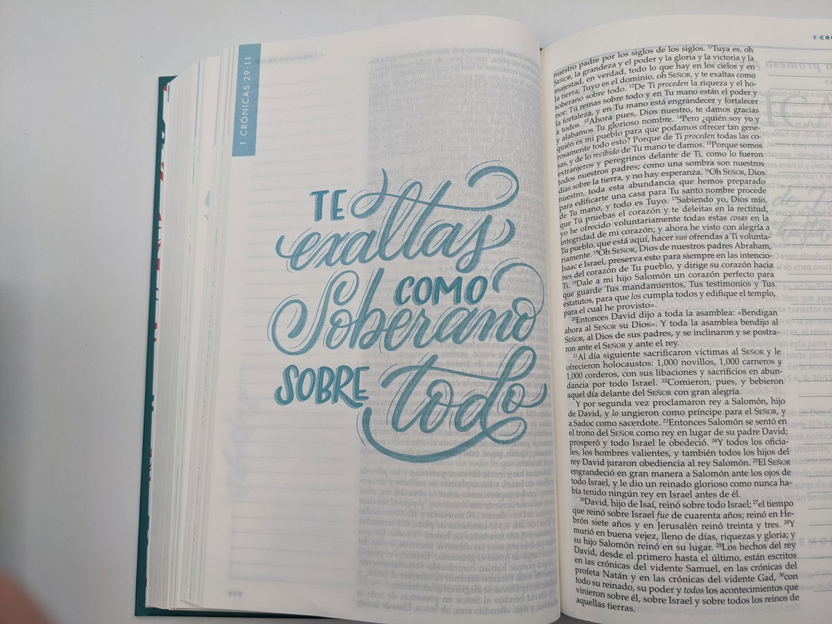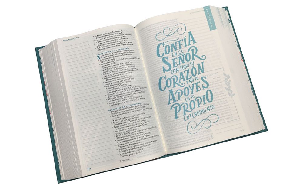 -Amplios márgenes que facilitan la toma de notas, pensamientos y oraciones, o dibujar los versículos favoritos.