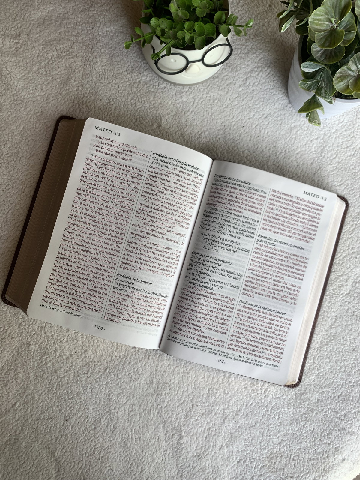 Manual de tamaño de la Biblia, con referencias en cadena, palabras de Cristo en rojo, plan de lectura, atributos de Jesús, cinta marcadora y mapas a todo color. El tamaño de la Biblia más popular, por combinar un diseño legible con un tamaño práctico. El tipo de letra, creado exclusivamente para Biblias Holman, es estético y cómodo para el lector. Las referencias y ayudas adicionales son el complemento perfecto al texto de la Reina Valera 1960, la versión preferida en español. Con esta Biblia podrás llevar la Palabra consigo y atesorarla en su corazón. Características:
