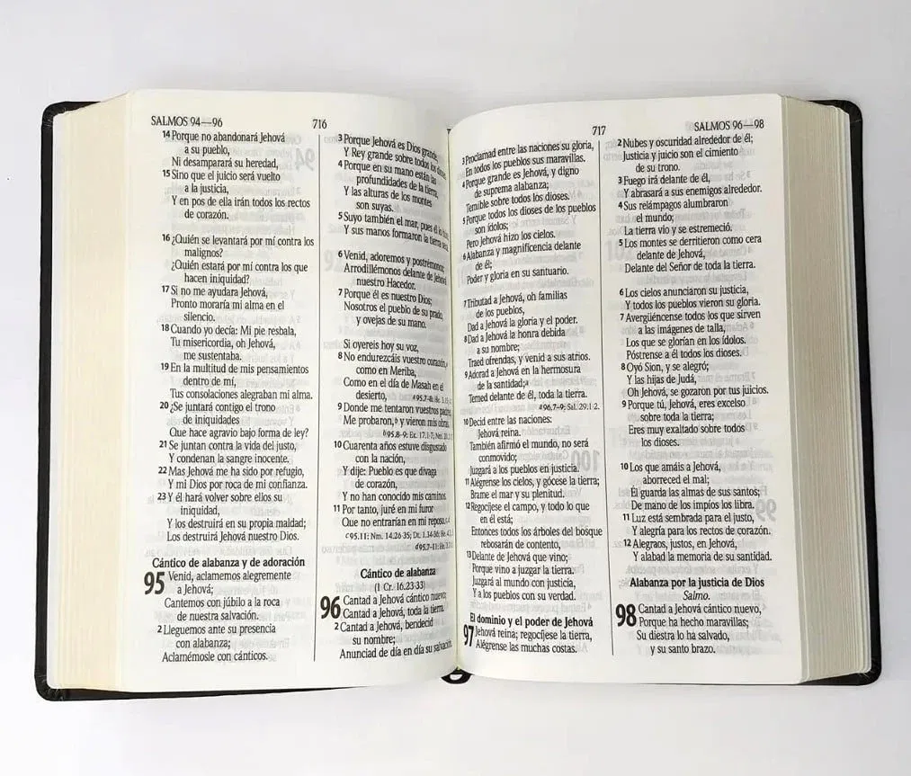 Biblia de lujo, con tapa de Piel genuina en color negro y con cantos dorados. El texto bíblico es Reina Valera 1960 en Letra Grande y con las Palabras de Jesús en rojo. Incluye Referencias, Concordancia y Mapas. 1600 páginas. Viene en protegida caja Clamshell.