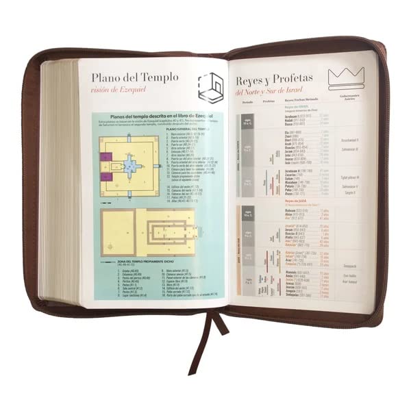 Reina Valera 1960, tamaño manual (138x212 mm), imitación piel, canto dorado, con cierre, palabras de Jesús en rojo, concordancia , Concordancia de personajes bíblicos. ayudas, referencias cruzadas. 32 páginas a todo color con ayudas y esquemas. 12 mapas a todo color .Letra 12.5 puntos.