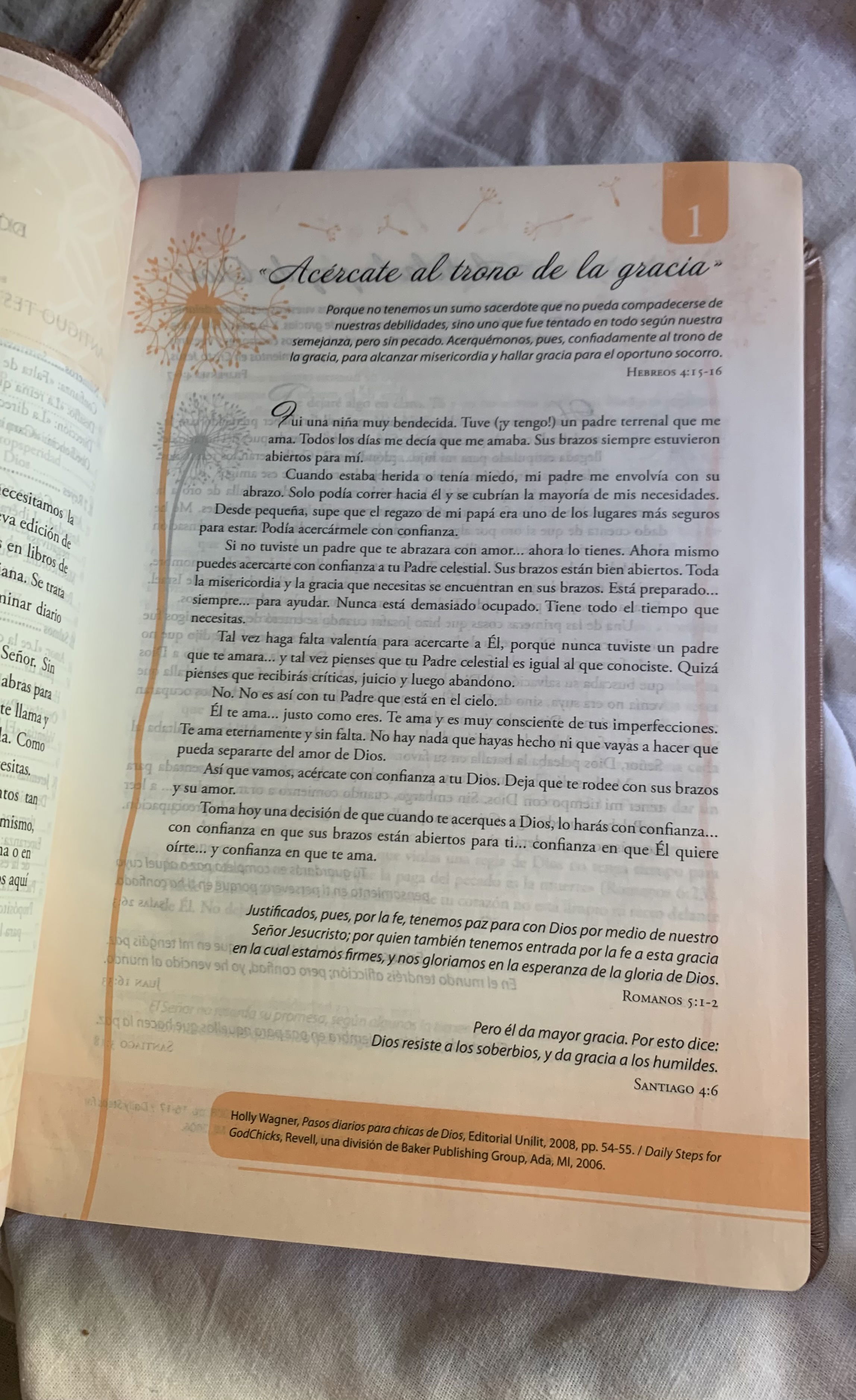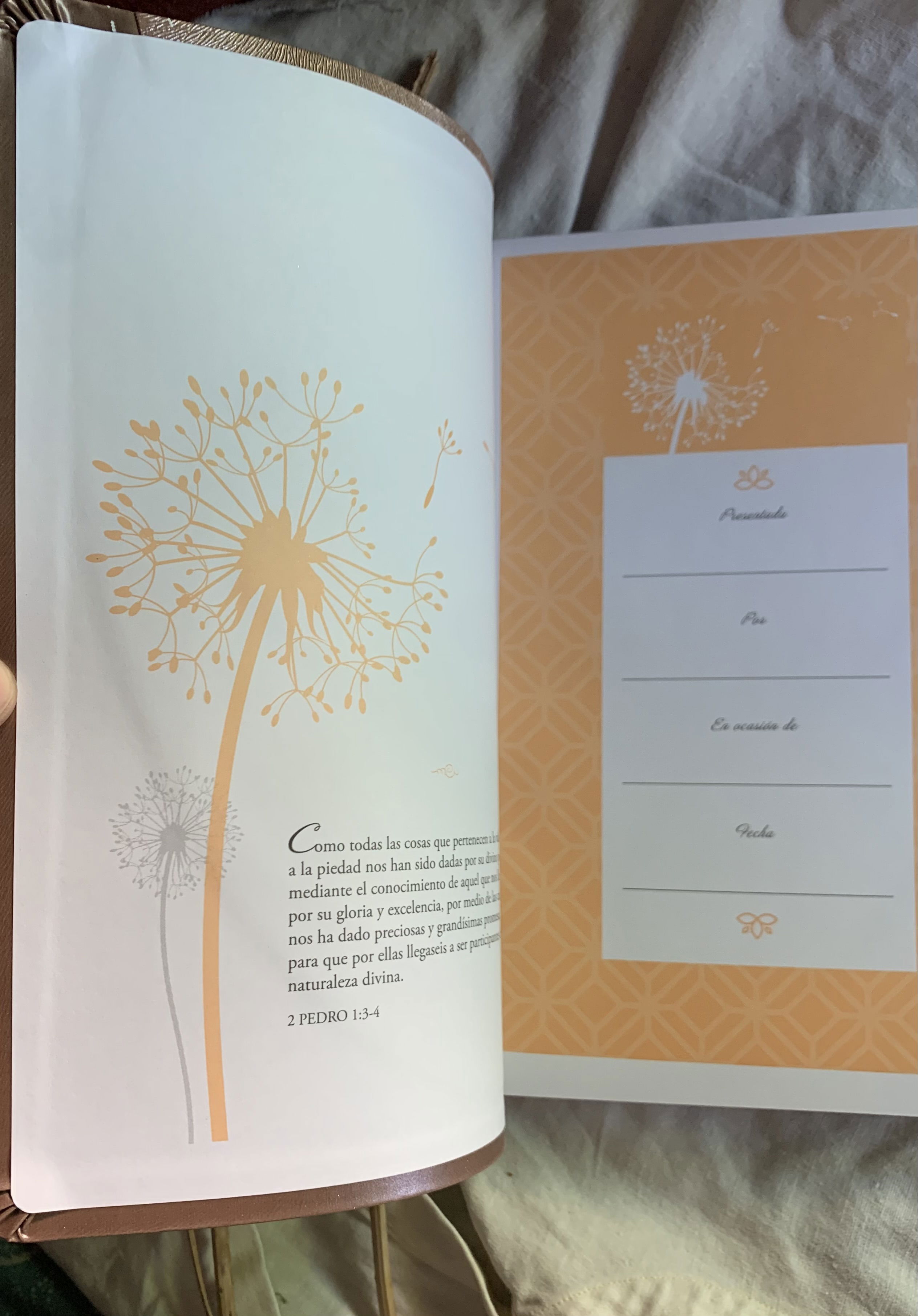 La Palabra y las promesas de Dios en letra gigante, acompañadas de noventa y dos edificantes meditaciones para la mujer.