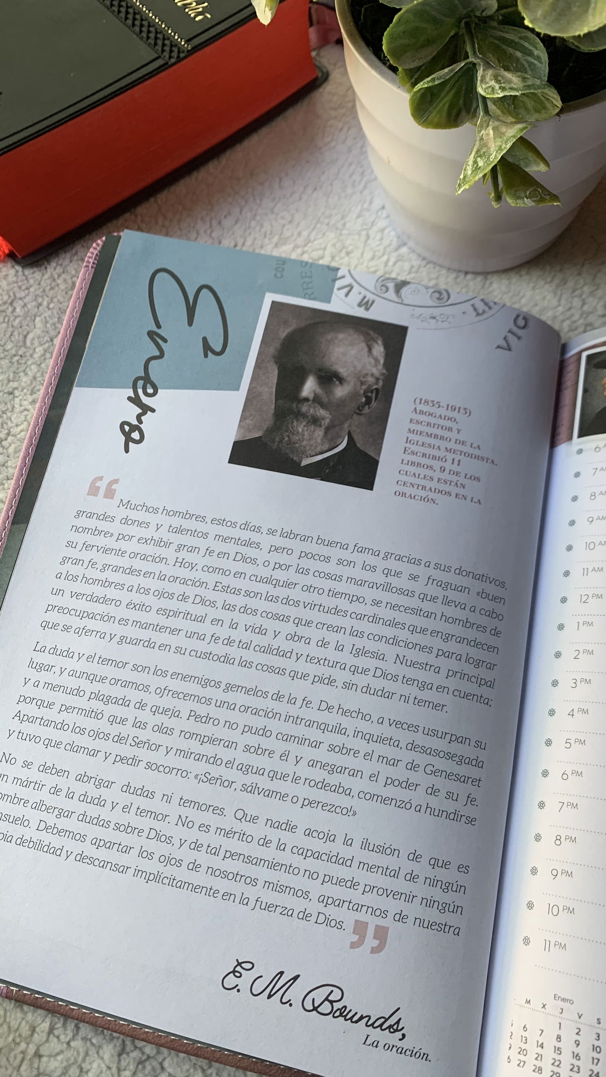 - Tener 12 pensamientos (uno al principio de cada mes) de autores como C.H. Spurgeon, J.C.Ryle, E.M. Bounds, Conde Zinzendorf, Jeremiah Burroughs…Que nos harán meditar y nos refrescarán el alma.
