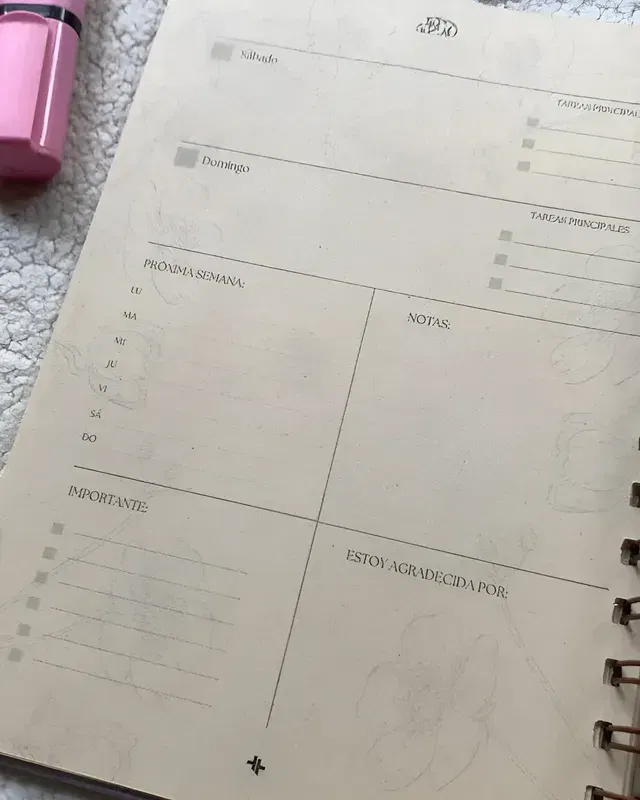 Planificador Semanal: Con espacio para tus tareas principales, permitiéndote ver tu semana con claridad y sin ruido.