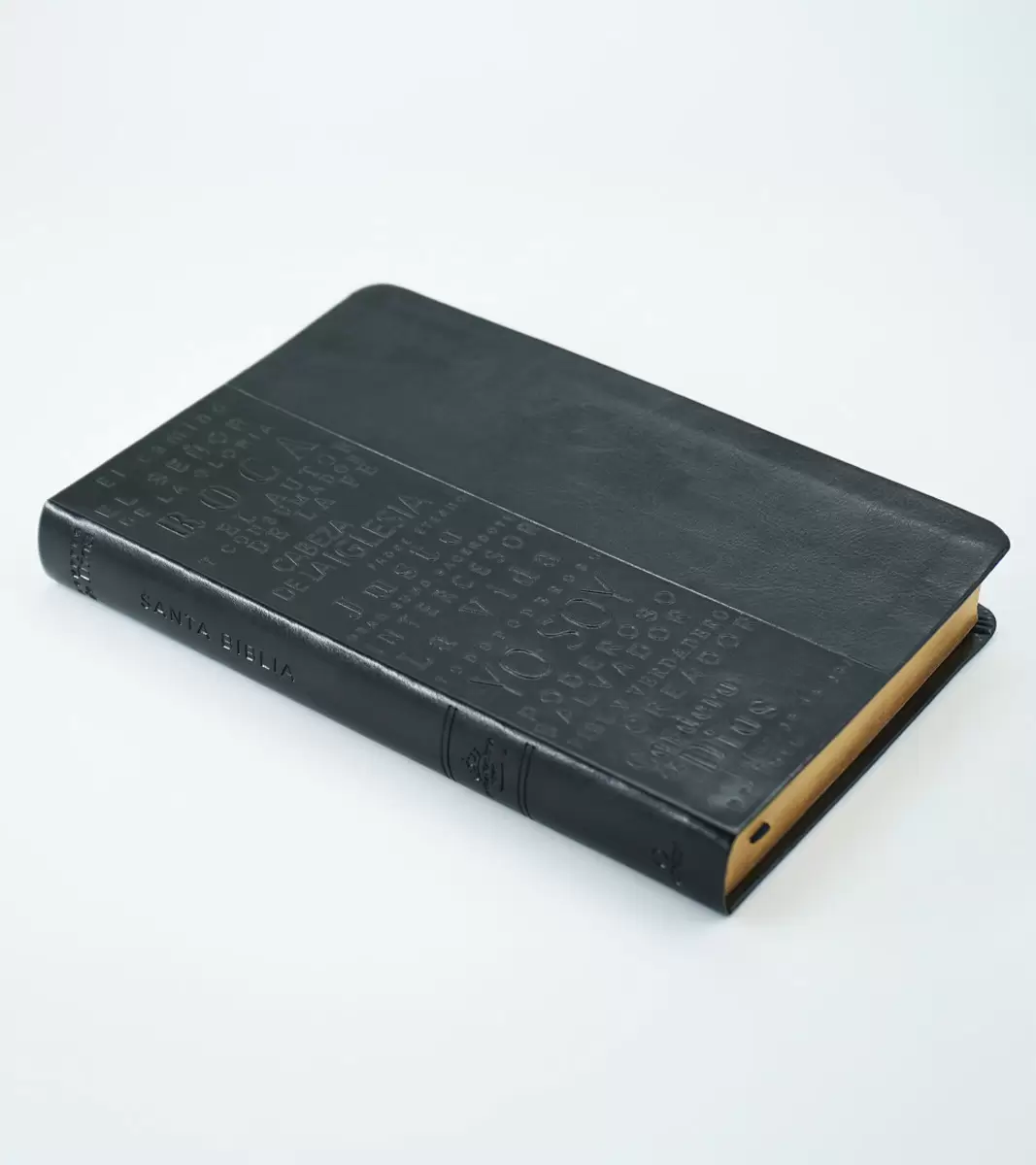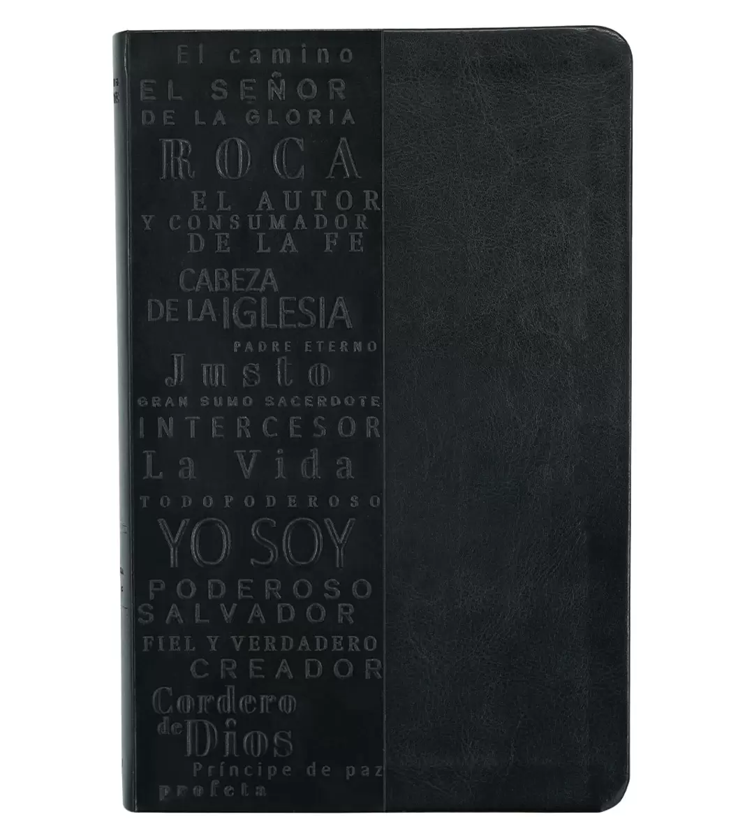 Biblia tamaño manual, ultrafina y con letra grande. Simil Piel negro con cinta marcadora y un estudio concisa de los nombres de Dios.